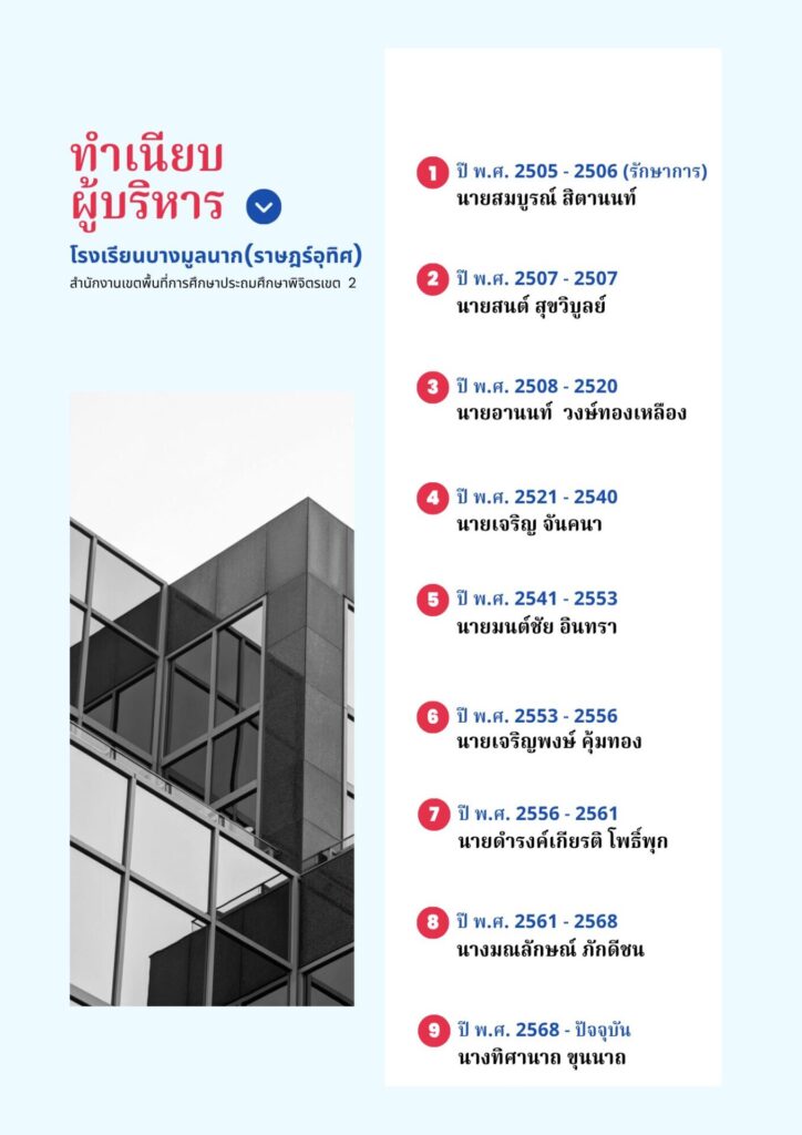 ทำเนียบผู้บริหาร 20 มิ.ย. 256618 พ.ย. 2025โรงเรียนบางมูลนาก(ราษฎร์อุทิศ)หน้า Facebook Messenger Twitter Print